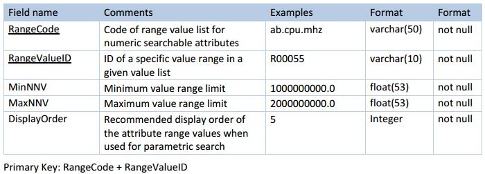 - Attribute value ranges for numeric searchable attributes (e.g. Clock Speed or Hard Drive Size)