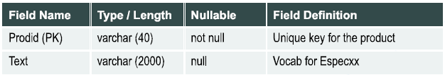 The Evocxx table is the vocabulary table for Especxx. Each Sectid, Hdrid, and Bodyid in Especxx can be